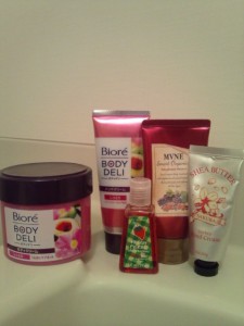 最近のお気に入りは1番左のビオレのボディデリシリーズ♪