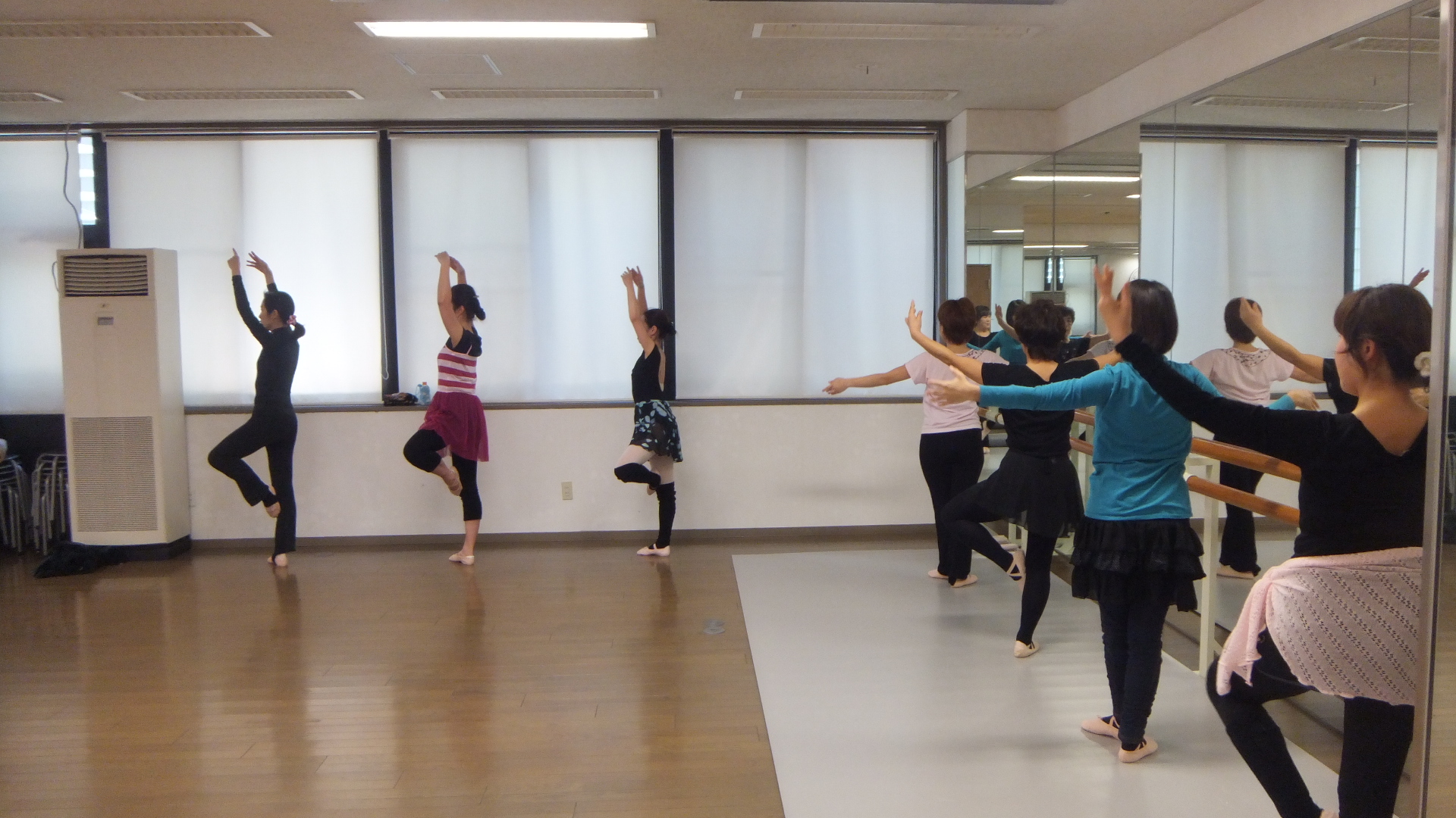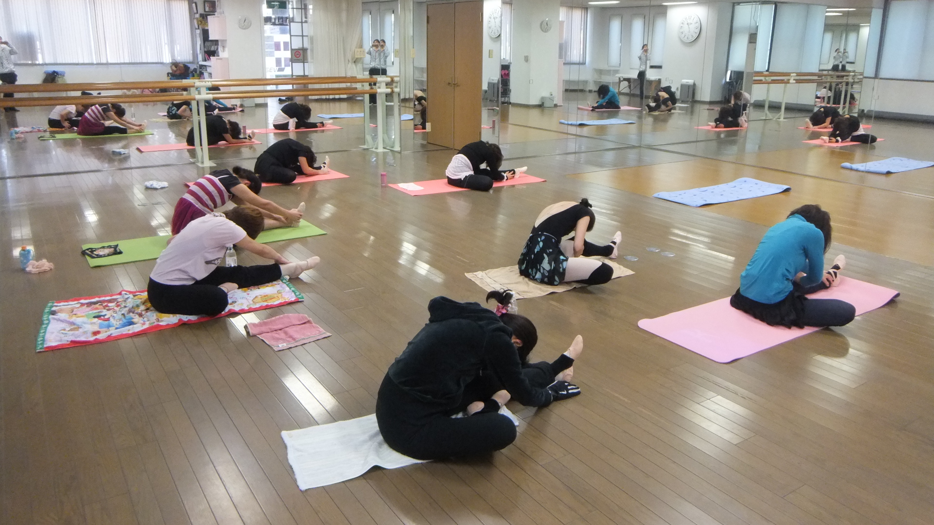 バーを使ってのバーレッスンと、センターレッスンを行います。