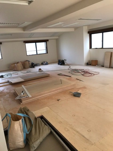 コンクリートの床はそのままでは踊れないので、レッスンする生徒さんの事を考え床上げをします。
