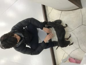 帰ろうと思ったら2階に住むオーナーさんのワンコがスタジオの扉の外に…