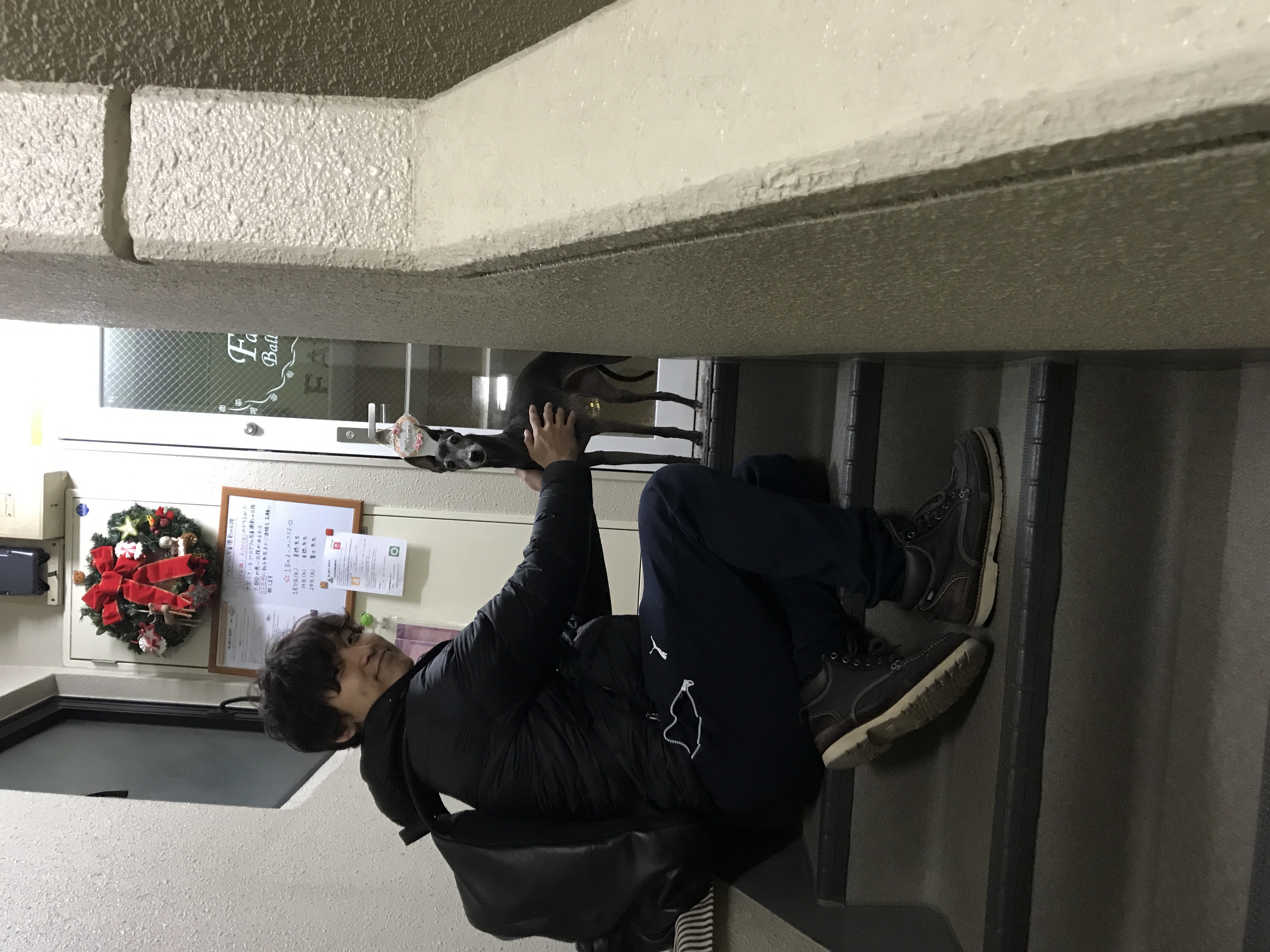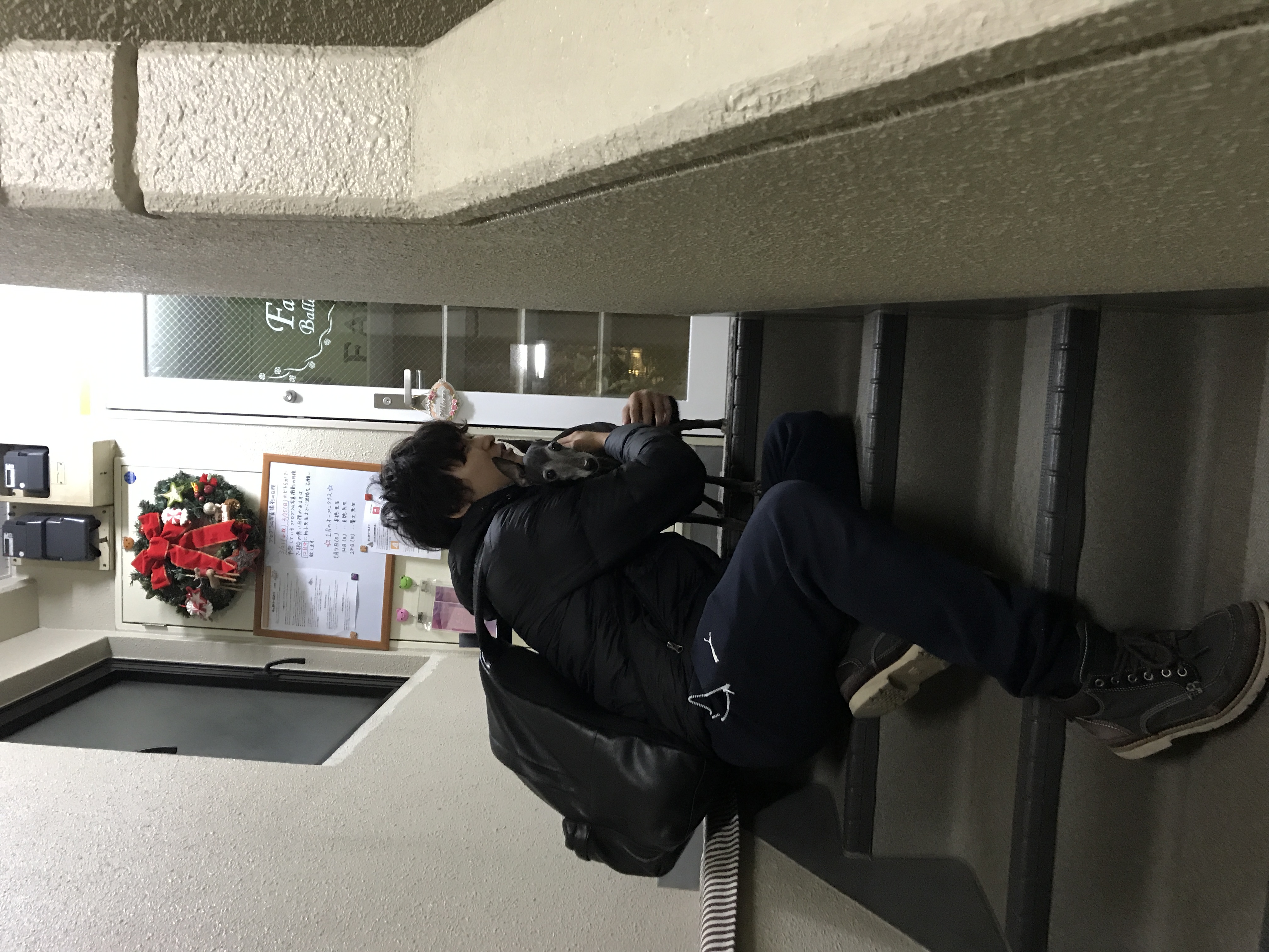 知宏先生に抱っこされて3階のスタジオから2階のオーナーさん宅まで運んで上げました♪
